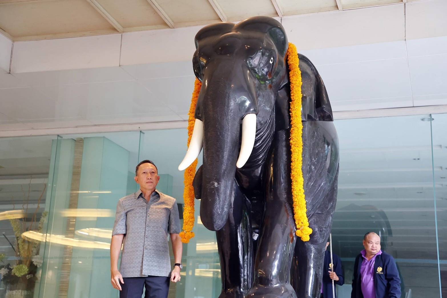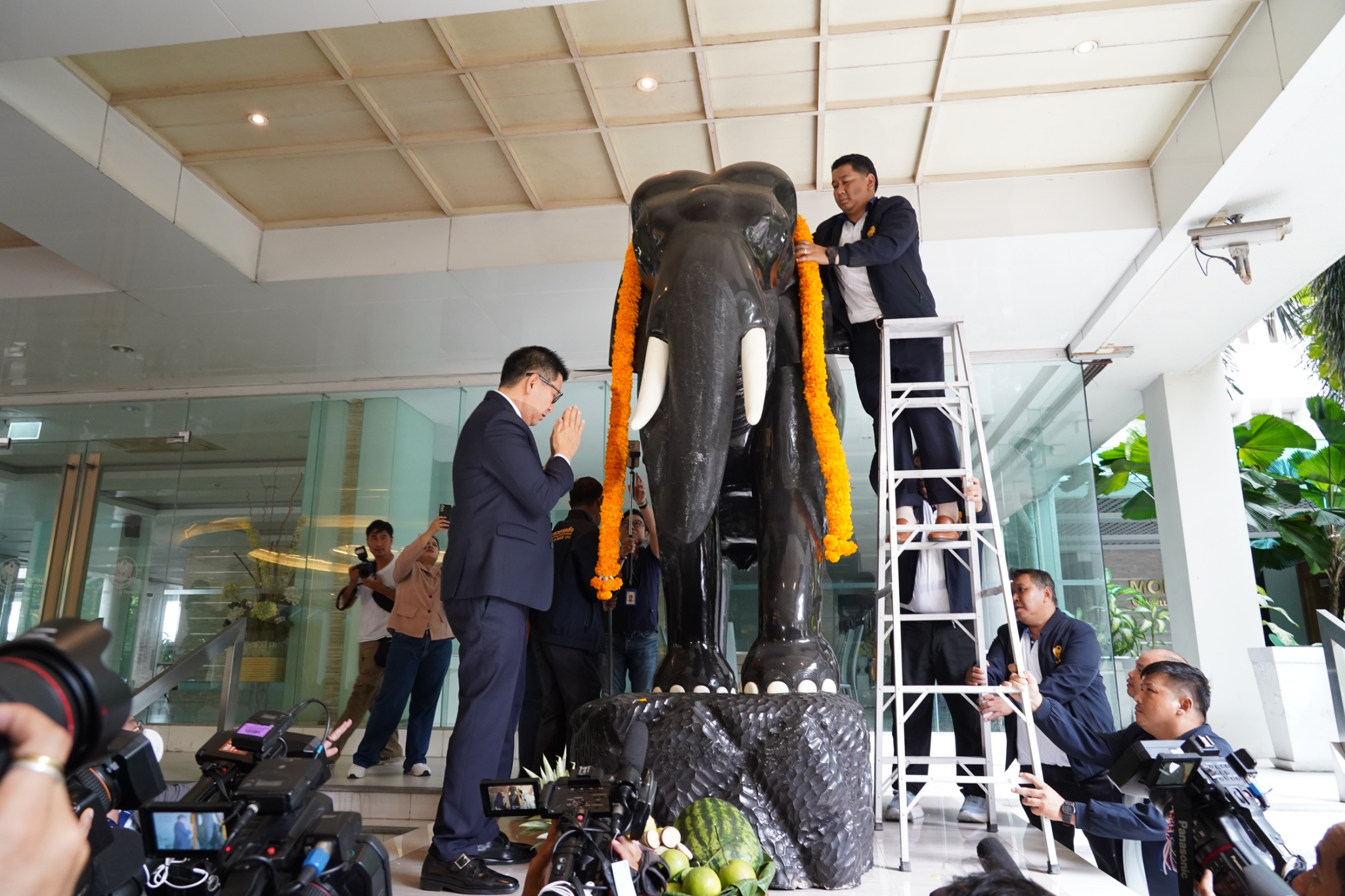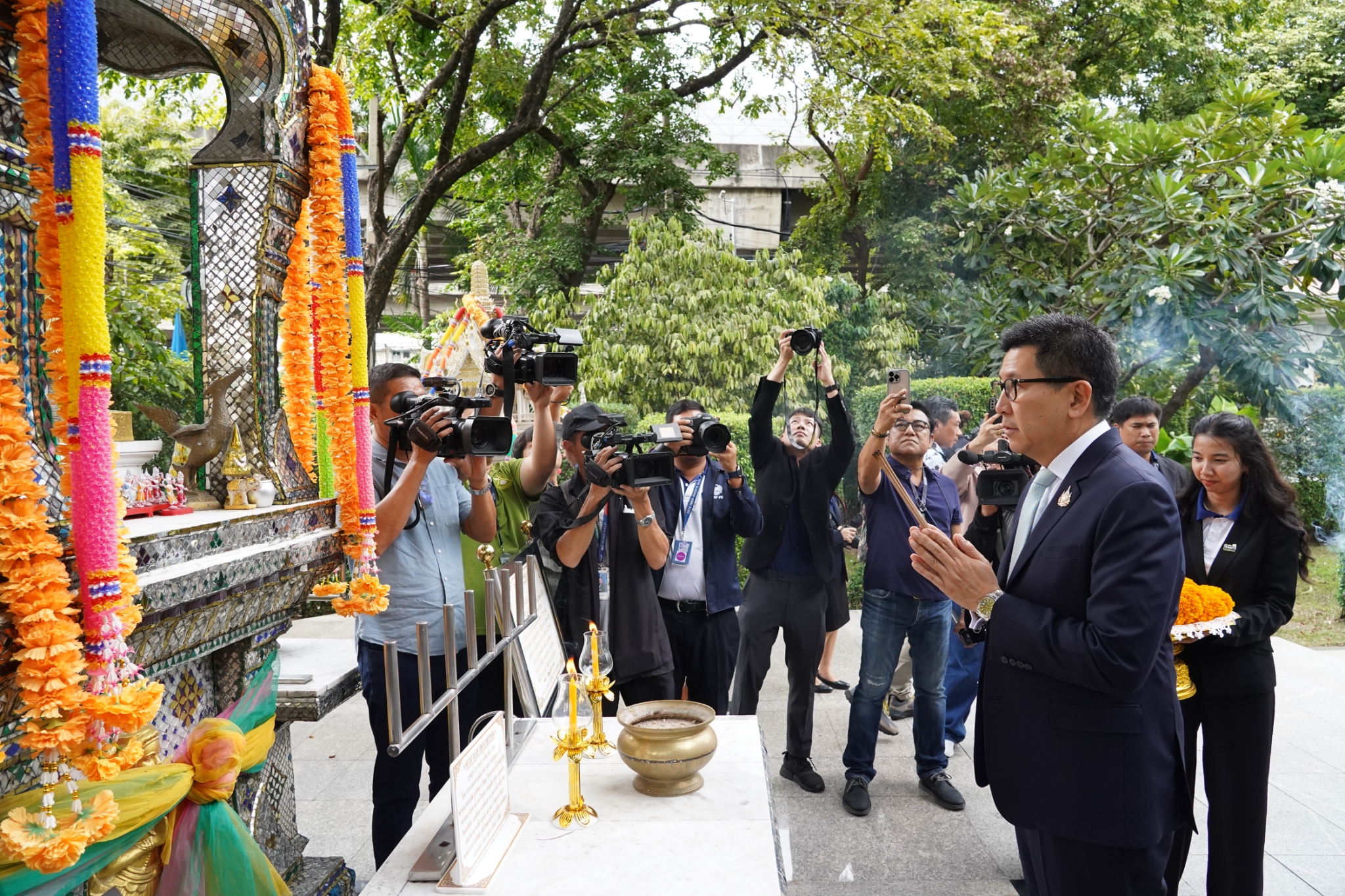 ดร. เอกนิติ นิติทัณฑ์ประภาศ รองนายกรัฐมนตรี และรัฐมนตรีว่าการกระทรวงการคลัง และนายวรภัค ธันยาวงษ์ รัฐมนตรีช่วยว่าการกระทรวงการคลัง เข้าสักการะสิ่งศักดิ์สิทธิ์ประจำกระทรวงการคลัง