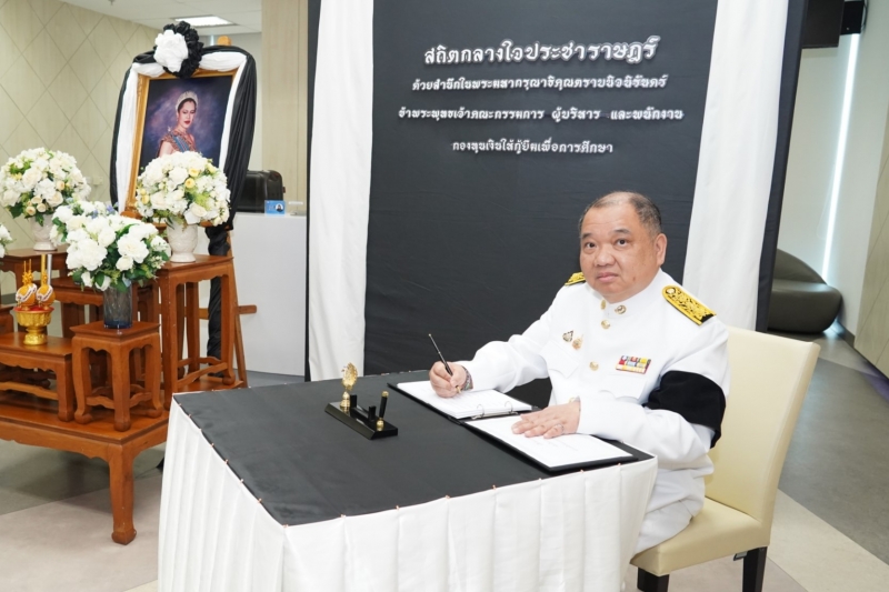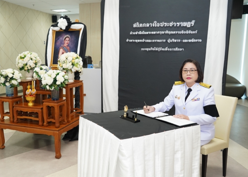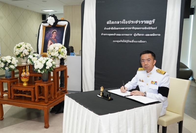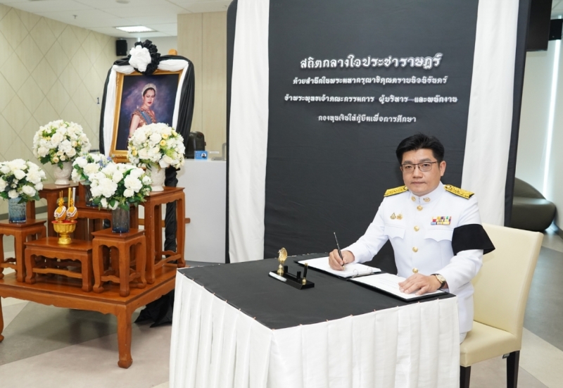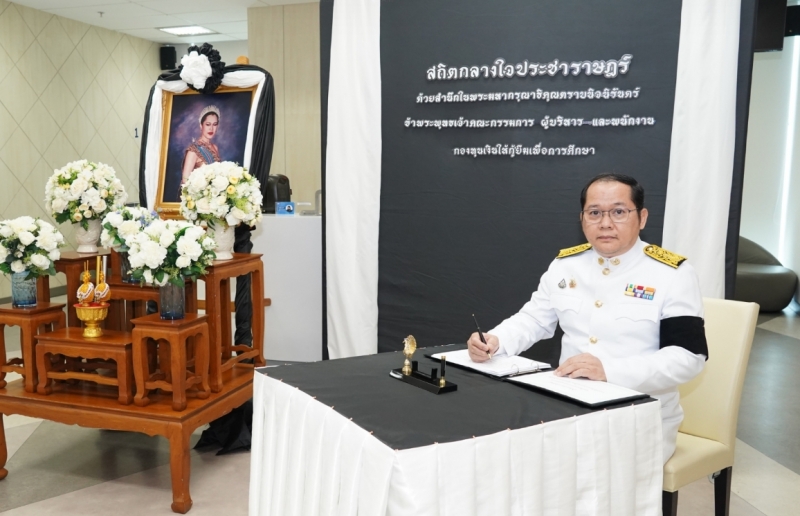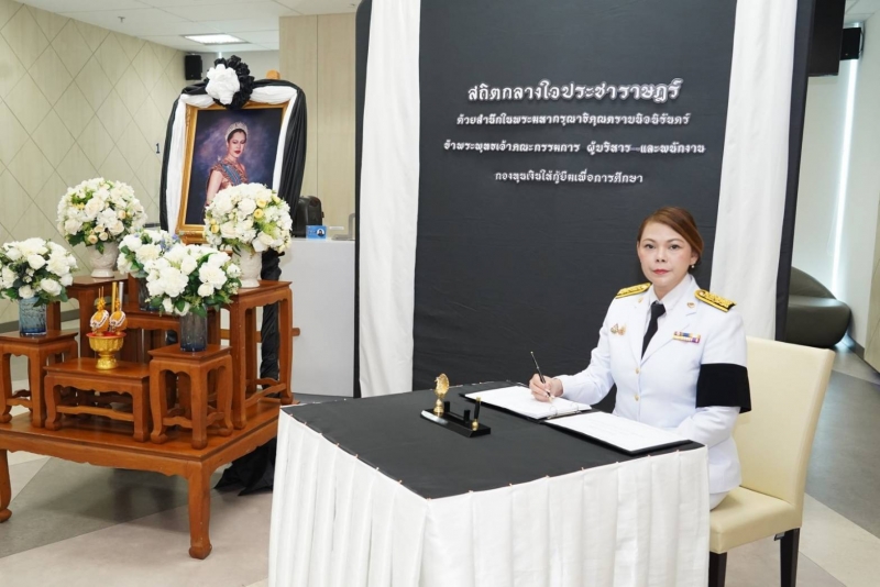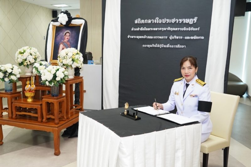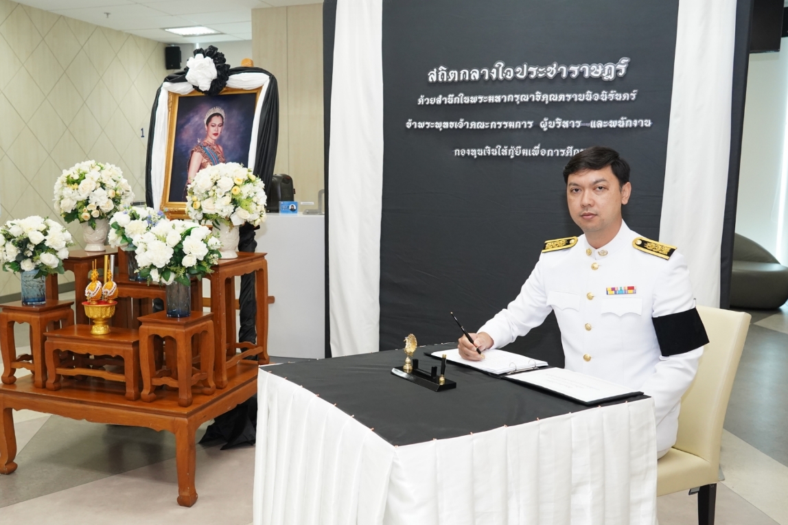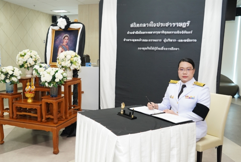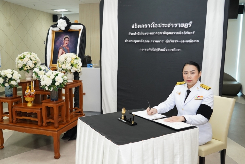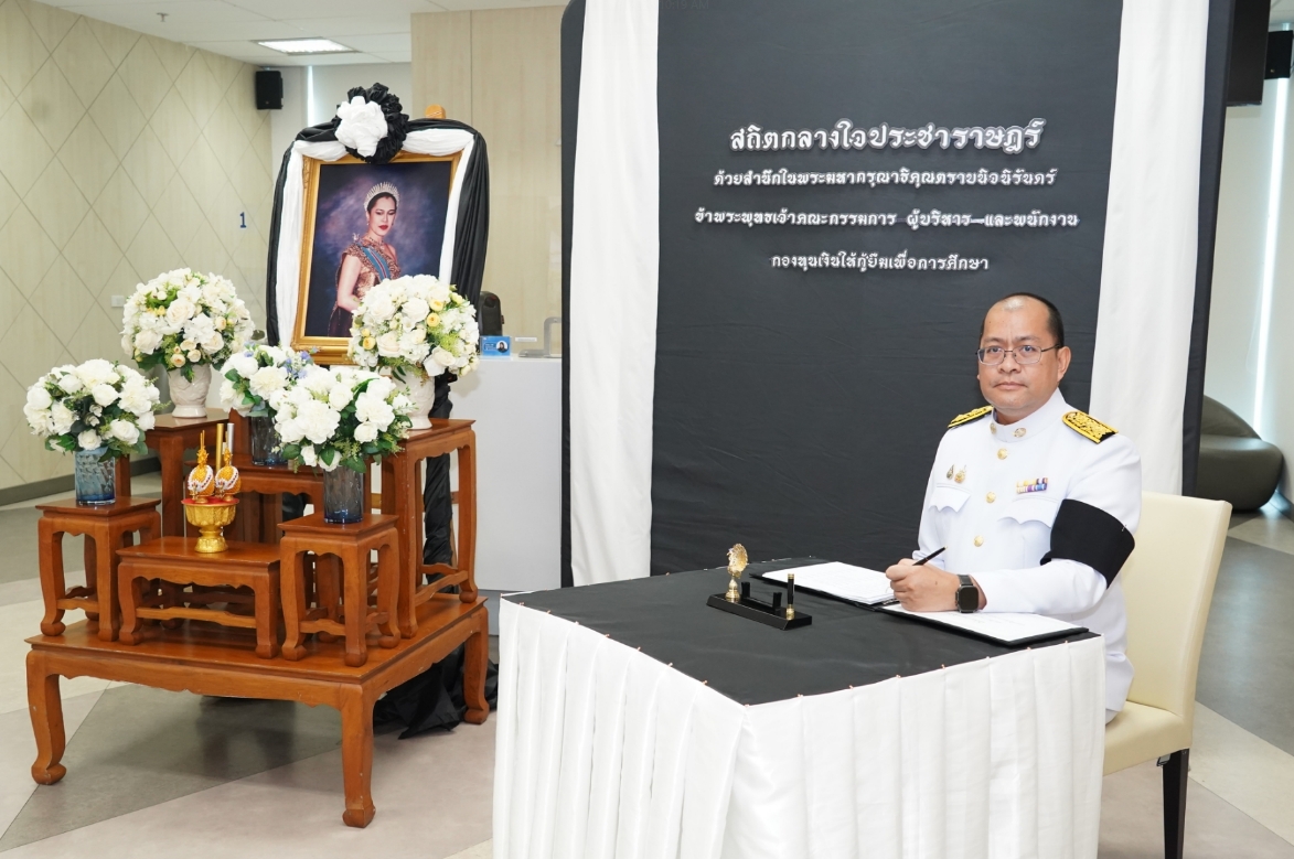 กองทุนเงินให้กู้ยืมเพื่อการศึกษา (กยศ.) จัดพิธีถวายสักการะและถวายความอาลัยแด่สมเด็จพระนางเจ้าสิริกิติ์ พระบรมราชินีนาถ พระราชชนนีพันปีหลวง เพื่อแสดงออกถึงความจงรักภักดีและสำนึกในพระมหากรุณาธิคุณอันหาที่สุดมิได้ โดยมีดร.นันทวัน วงศ์ขจรกิตติ ผู้จัดการกองทุนฯ พร้อมด้วยนางอัญชลี ภูริวิทย์วัฒนา นายอภินันช์ ศุนทรนันท์ รองผู้จัดการกองทุนฯ นำคณะผู้บริหาร เข้าร่วมพิธี เมื่อวันที่ 6 พฤศจิกายน 2568 ณ สำนักงาน กยศ.